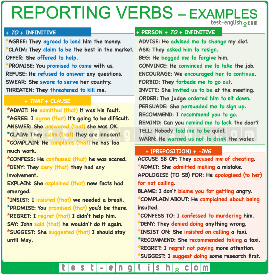 Grammar verb patterns with reporting verbs (also see page 172)(+/- 20 mins)